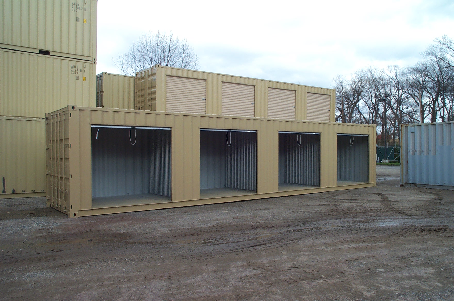 Type IISO cargo container with (3) roll-up doors and (2) interior wall partitions.